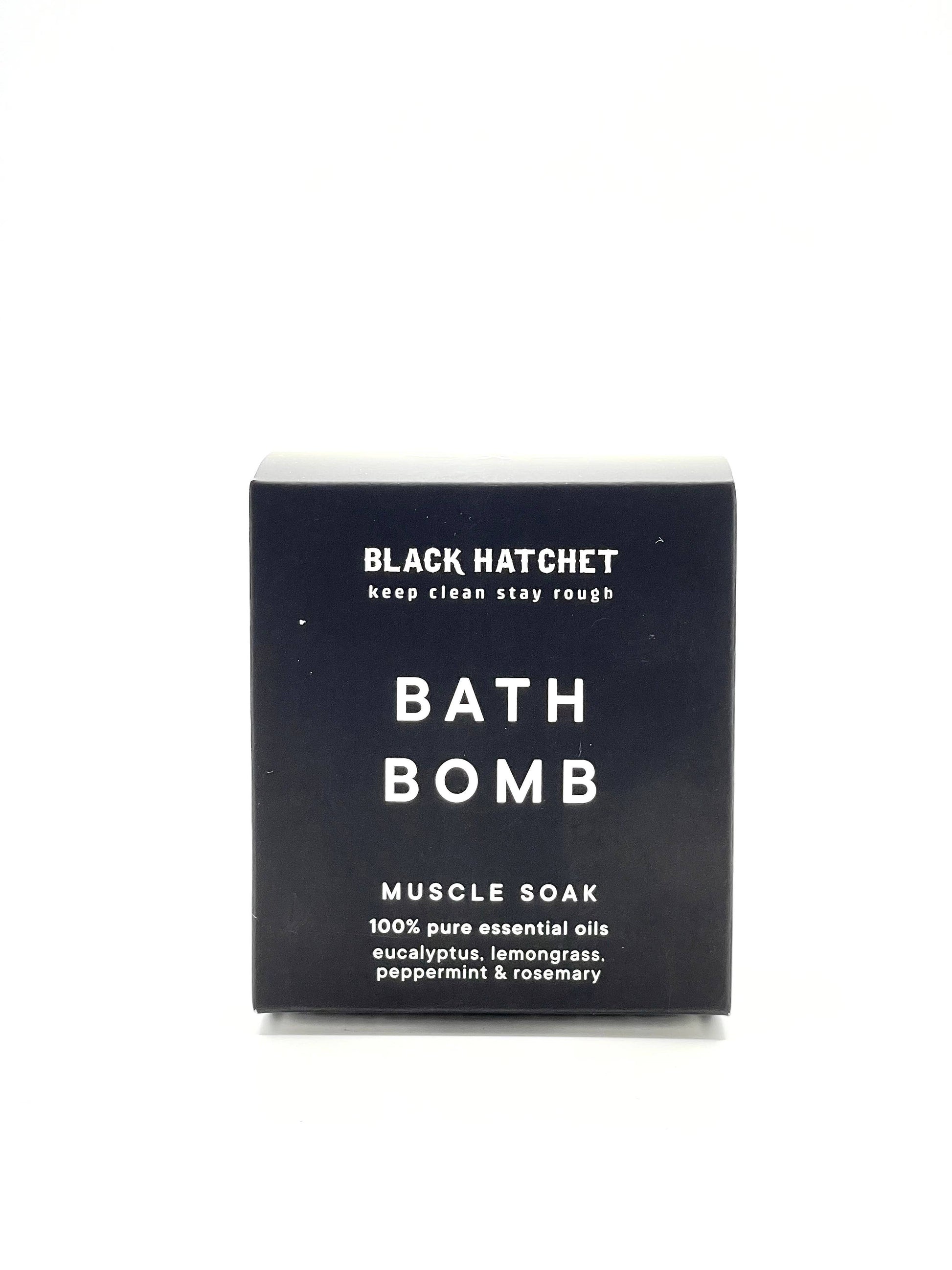 Muscle Bath Bomb – Black Hatchet Men’s Recovery Bath Bomb with Epsom Salt & Essential Oils Benefits Designed for sore muscles and overworked bodies, this bath bomb is a fast-acting, self-care essential for men.
